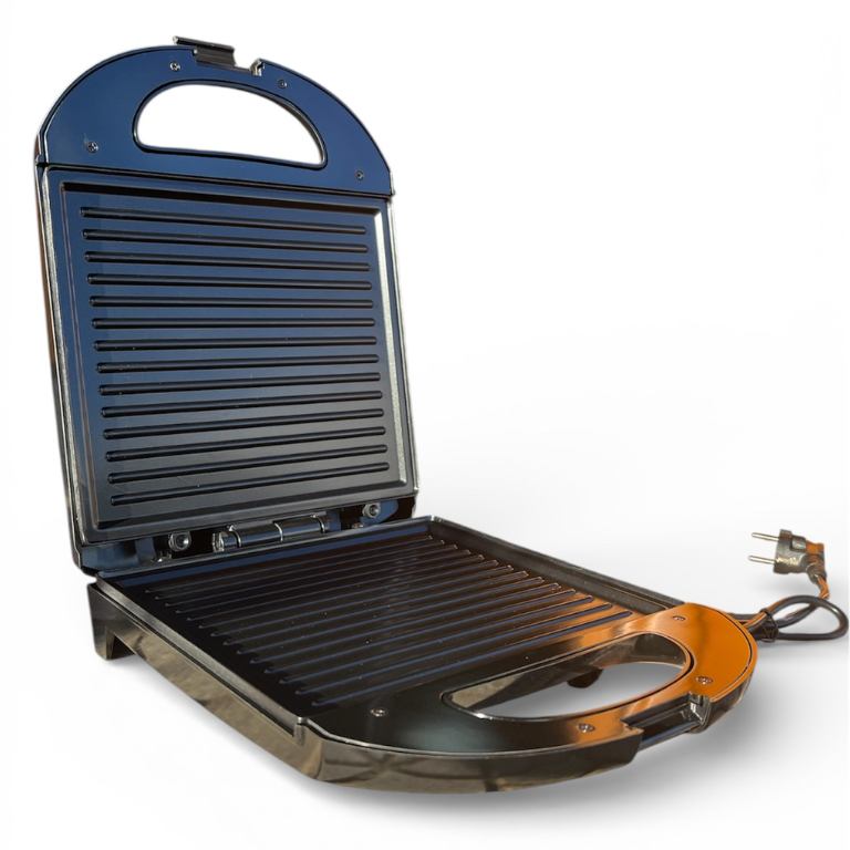 Apportez une touche de praticité et de gourmandise à votre cuisine avec l’appareil à panini 1800 W, un indispensable pour réaliser des sandwichs chauds, dorés et appétissants en toute simplicité. Son design compact et moderne, présenté dans une finition sombre élégante, s’intègre facilement sur tous les plans de travail, même dans les cuisines les plus petites.