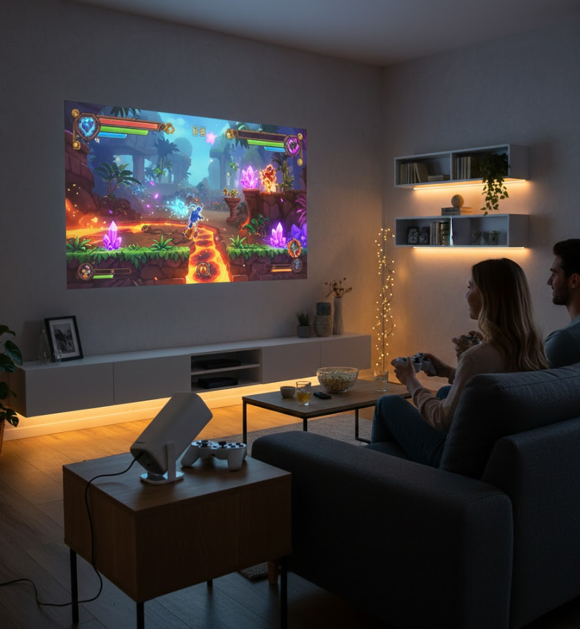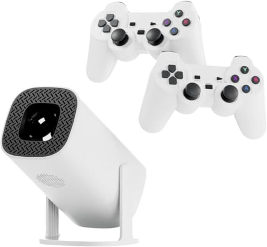 Smart Android TV Projector Compact et moderne, ce projecteur intelligent transforme votre salon en espace de divertissement. Livré avec deux manettes de jeu, une télécommande et un support intégré, il est idéal pour le gaming et le multimédia. Simple à utiliser, sans fil et prêt à l’emploi, il offre une expérience ludique et immersive pour toute la famille.